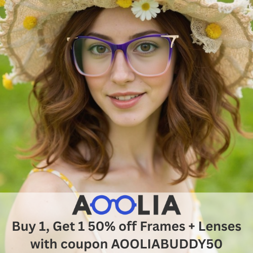 Buy 1, Get 1 50% off Frames + Lenses at Aoolia using coupon AOOLIABUDDY50. Shipping is Free on orders over $79. All items are backed by a 30-day return/exchange policy and a 90-day warrranty.