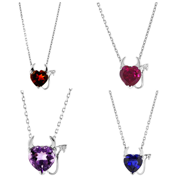 Show off your devious side with a Devil Heart Pendant. On sale for $24, you can get an extra 20% off using coupon PH20. Choice of garnet and white sapphire, ruby and white sapphire, blue and white sapphire, and amethyst and white sapphire. Includes sterling silver link chain.