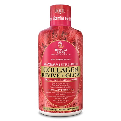 Radiant skin starts from within, and Tropical Oasis Collagen Revive + Glow is designed to make that glow-up effortless. This fast-absorbing liquid supplement features a powerhouse trio of clinically proven ingredients – VERISOL® collagen peptides, Setria® L-glutathione, and AstaReal® astaxanthin to help reduce wrinkles, improve skin elasticity, and boost hydration. With a 98% absorption rate, it works quickly to support smoother skin, stronger nails, and fuller hair, all while fighting free radicals and signs of aging.