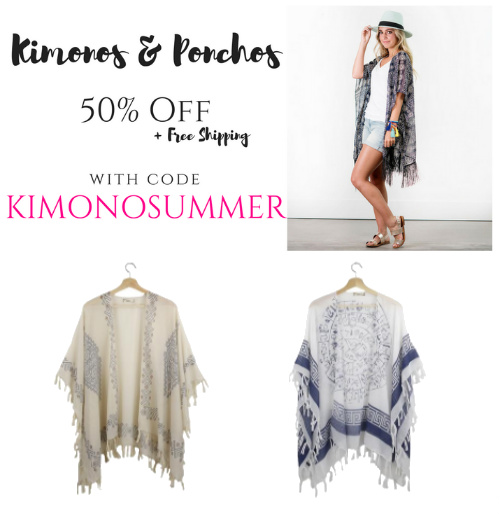 Women’s Kimonos and Ponchos are an extra 50% off and ship for Free using coupon KIMONOSUMMER. Many styles to choose from. Prices start at just $9.98 after coupon.